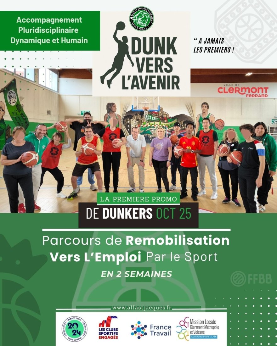 Fort du succès de sa première édition, l’ALFA Saint-Jacques lance en janvier 2026 la deuxième session du programme “Dunk vers l’Avenir”, un parcours de remobilisation par le sport à destination des demandeurs d’emploi, tous âges et tous profils confondus.